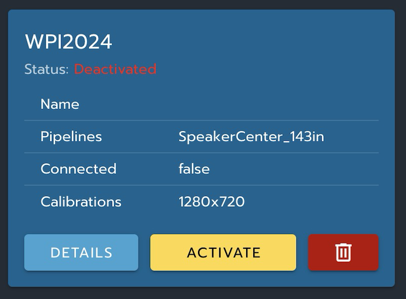 If a camera has been activated in the past, it will be listed as “Deactivated” in the camera list. You can press the “Activate” button to enable PhotonVision to use the camera.