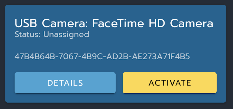 When you first plug in a camera, it will be detected and added to the list of cameras with the “Unassigned” status, as shown below. You can press the “Activate” button to enable PhotonVision to use the camera.
